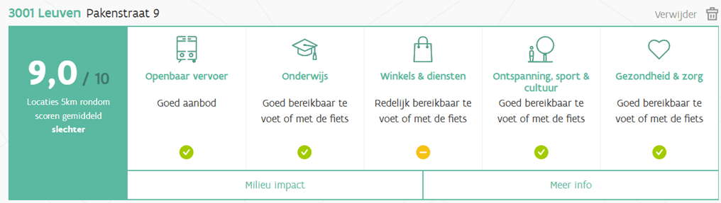 There are two bus stops nearby (lines 4-14-609-N6 at 15 m and line 15-897 at 270 m). The green lung of the Park Abbey is less than 500 m away. Close to schools and the Heverlee and Leuven train stations. Excellent connections to the E40 / E314 / Haasrode. The buildings have an excellent Mobiscore of 9 out of 10!